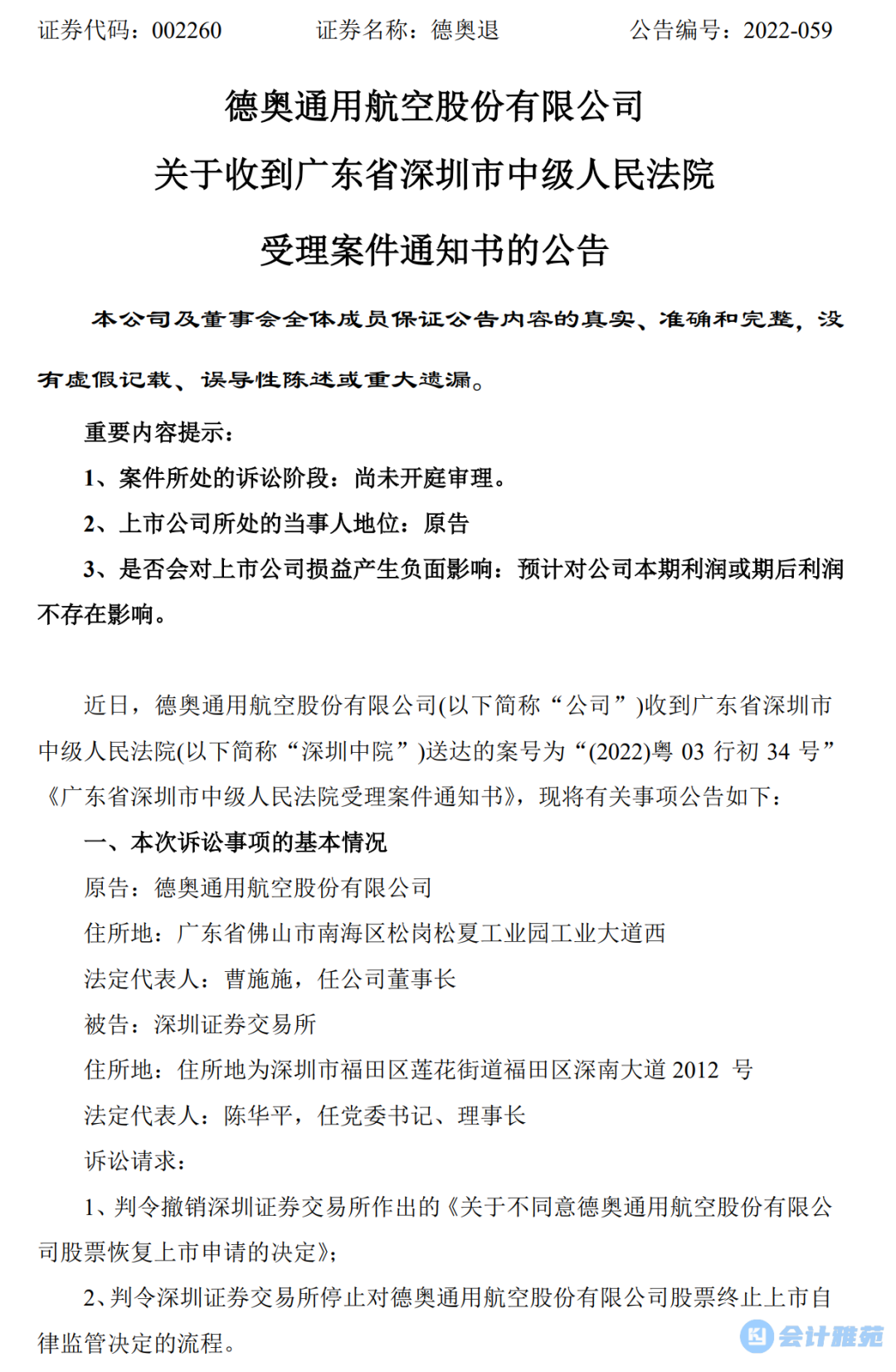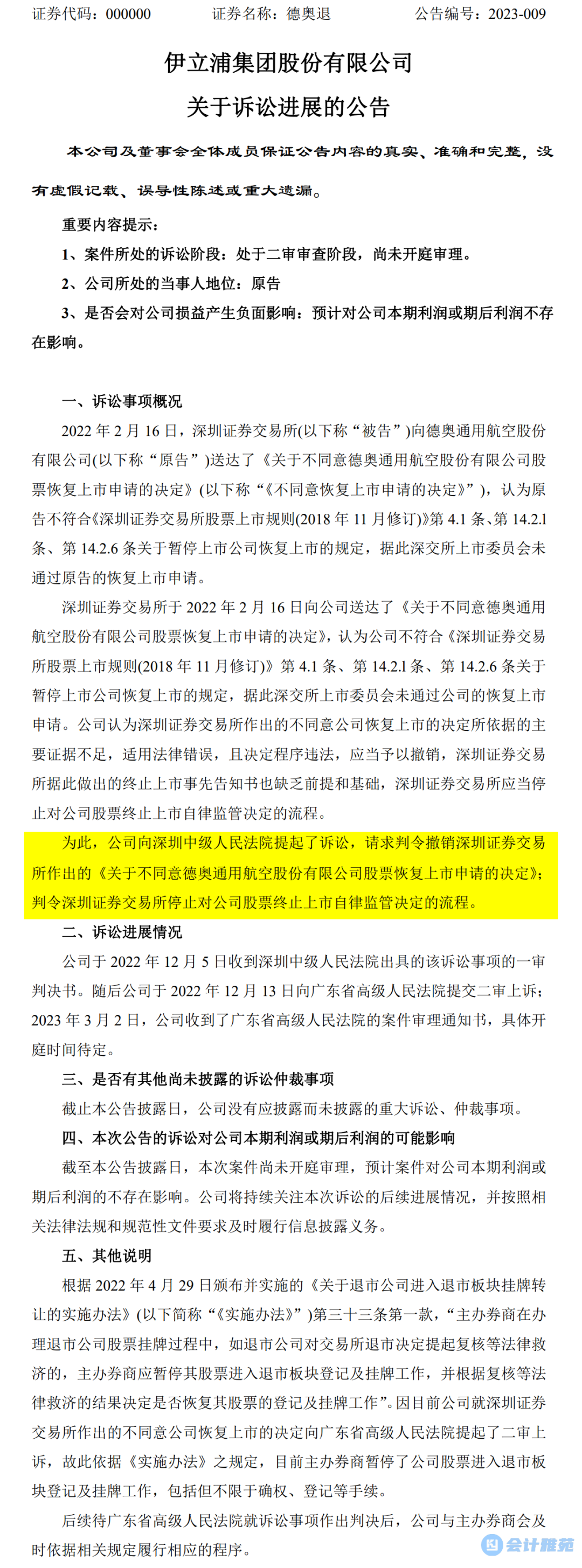 德奧退于2023年7月14日發(fā)布《關(guān)于訴訟進(jìn)展的公告》,具體內(nèi)容如下: