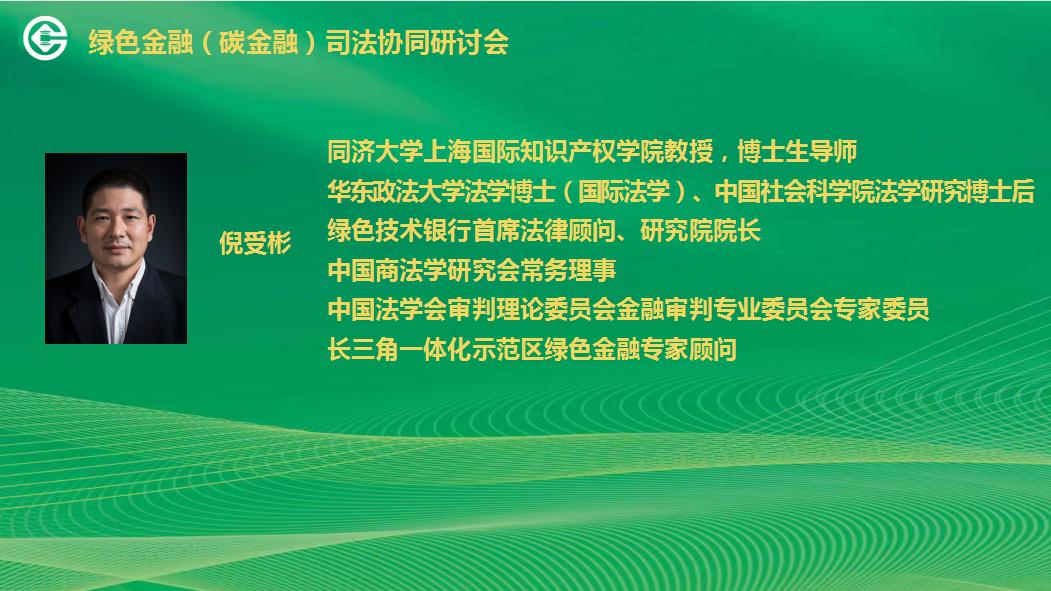 倪受彬教授以《綠色金融:制度與產(chǎn)品》為題,圍繞綠色金融的概念、制度框架、制度體系、綠色金融法議題等角度進(jìn)行發(fā)言。