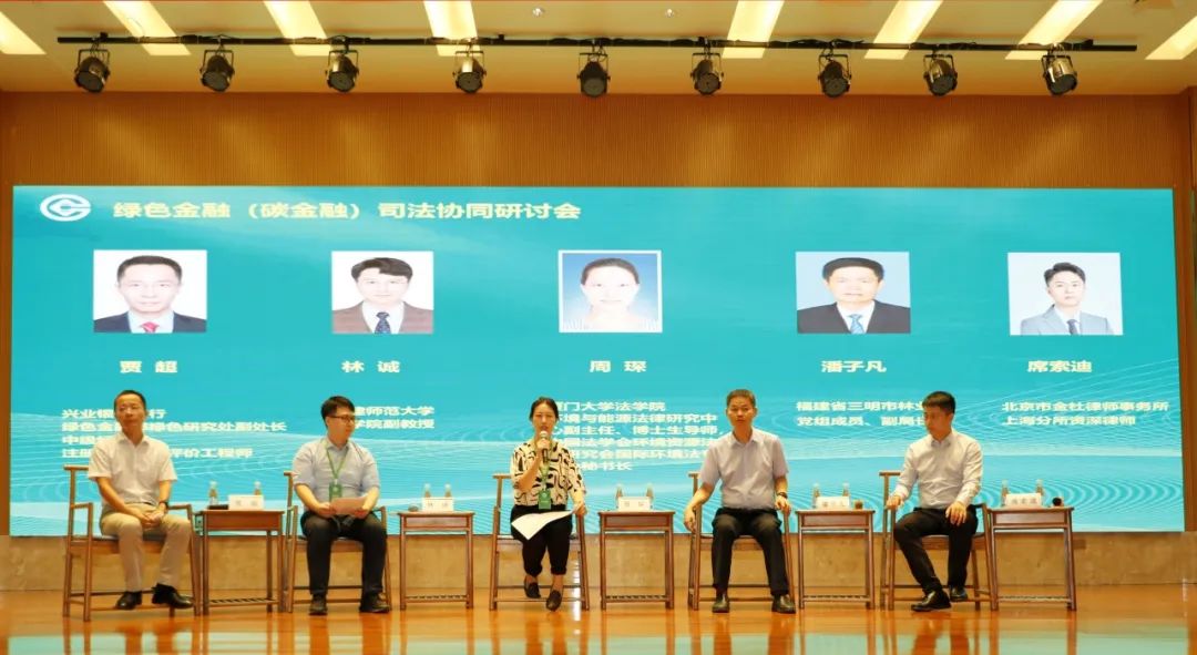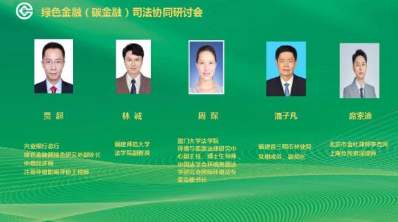 廈門大學(xué)法學(xué)院環(huán)境與能源法律研究中心副主任、副教授、博士生導(dǎo)師、中國法學(xué)會(huì)環(huán)境資源法學(xué)研究會(huì)國際環(huán)境法專委會(huì)秘書長周琛,福建師范大學(xué)法學(xué)院副教授林誠,福建省三明市林業(yè)局黨組成員、副局長潘子凡,興業(yè)銀行總行綠色金融部綠色研究處副處長、中級(jí)經(jīng)濟(jì)師、注冊(cè)環(huán)境影響評(píng)價(jià)工程師賈超,北京市金杜律師事務(wù)所上海分所資深律師席索迪從理論與實(shí)務(wù)的不同領(lǐng)域和角度圍繞綠色金融(碳金融)等方面進(jìn)行了互動(dòng)交流。