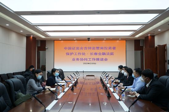 為深入貫徹落實(shí)今年1月10日召開(kāi)的全國(guó)法院金融審判工作會(huì)議要求,發(fā)揮金融審判職能作用,做好與金融監(jiān)管部門(mén)的法治協(xié)同及訴源治理多元解紛機(jī)制建設(shè),進(jìn)一步保護(hù)中小投資者合法權(quán)益,建立金融司法與金融監(jiān)管的常態(tài)化協(xié)同機(jī)制。2月8日,長(zhǎng)春金融法庭與中國(guó)證監(jiān)會(huì)吉林監(jiān)管局投資者保護(hù)工作處召開(kāi)業(yè)務(wù)協(xié)同工作推進(jìn)會(huì)。長(zhǎng)春金融法庭庭長(zhǎng)華子琳、投資者保護(hù)工作處處長(zhǎng)杜麗梅、市法院保護(hù)中小投資者指標(biāo)組成員參加會(huì)議。