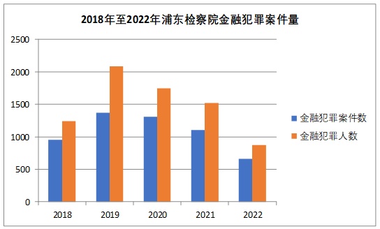 2018年至2022年,浦東新區(qū)人民檢察院共受理金融犯罪審查逮捕案件2359件3368人,審查起訴案件3046件4094人,案件數(shù)量呈先升后降的趨勢。