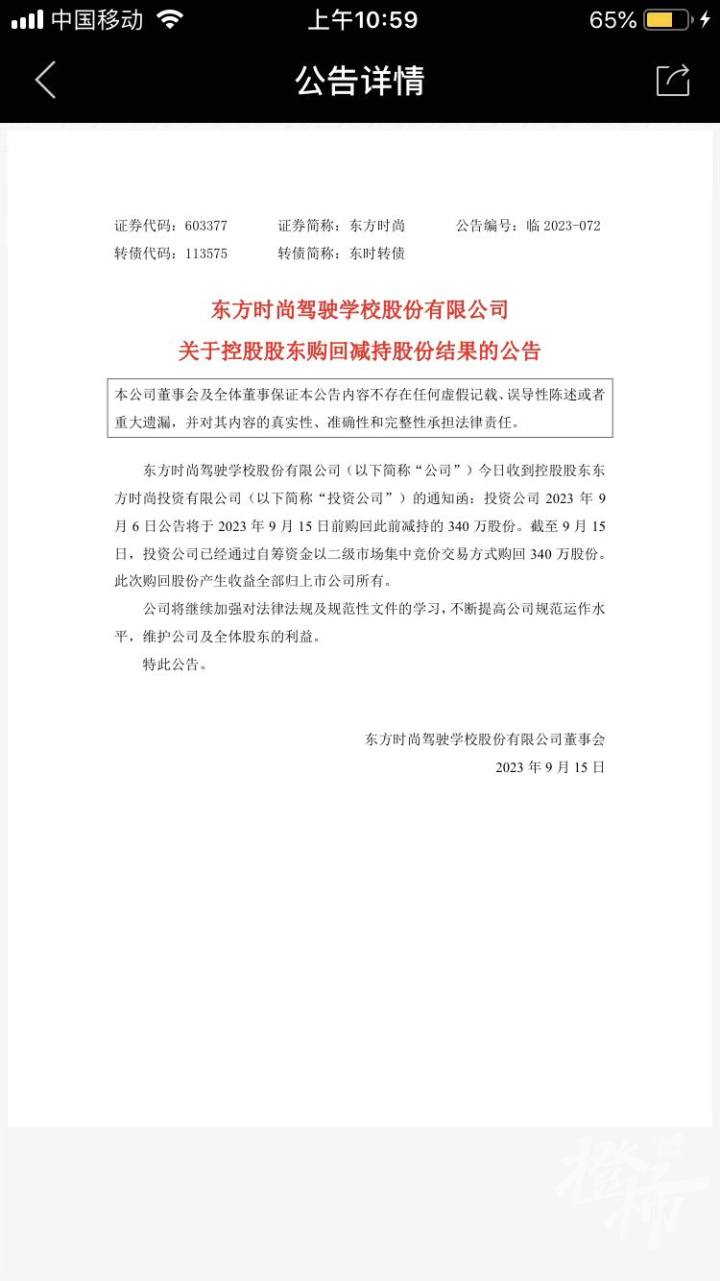 同日,東方時(shí)尚還公告稱,截至9月15日,控股股東東方時(shí)尚投資有限公司已經(jīng)通過自籌資金以二級(jí)市場(chǎng)集中競(jìng)價(jià)交易方式購回此前減持的340萬股份。在此之前,東方時(shí)尚控股股東東方時(shí)尚投資有限公司曾因在已知曉減持新規(guī)相關(guān)要求下,仍通過大宗交易減持公司股份,而被北京證監(jiān)局采取責(zé)令改正措施的決定、上交所監(jiān)管警示決定。