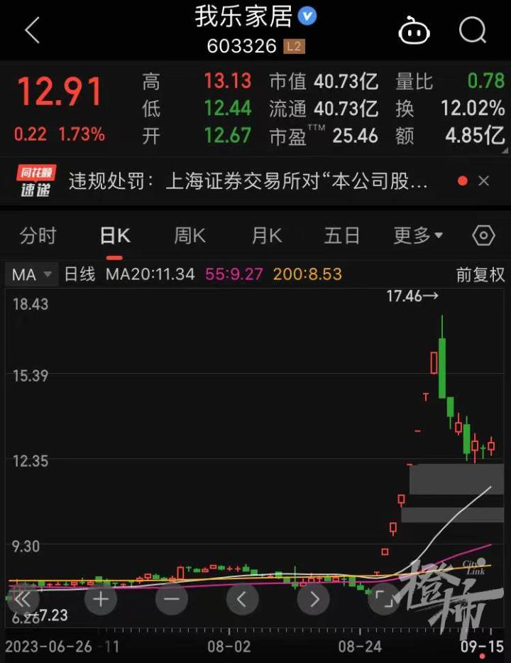 除了東方時(shí)尚之外,A股上市公司我樂家居也因?yàn)檫`規(guī)減持受到了證監(jiān)會(huì)重罰。自今年8月28日開始,我樂家居在二級(jí)市場(chǎng)股價(jià)暴漲,短時(shí)間內(nèi)連拉八個(gè)漲停板引起了資本方的巨大關(guān)注。至今年9月7日,我樂家居一度沖高至17.46元/股,區(qū)間漲幅高達(dá)132%。不過,9月7日當(dāng)天在創(chuàng)下最高點(diǎn)之后,該公司股價(jià)即在最大的賣壓之前直掛跌停,一時(shí)間,關(guān)于我樂家居大股東清倉式減持的質(zhì)疑聲不絕于耳。