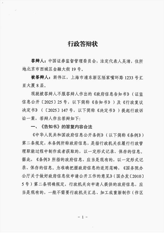 本文是斯偉江律師因中國證監(jiān)會拒絕公開“操縱證券市場認定標準”的政府信息,而向北京金融法院起訴證監(jiān)會一案的代理詞。